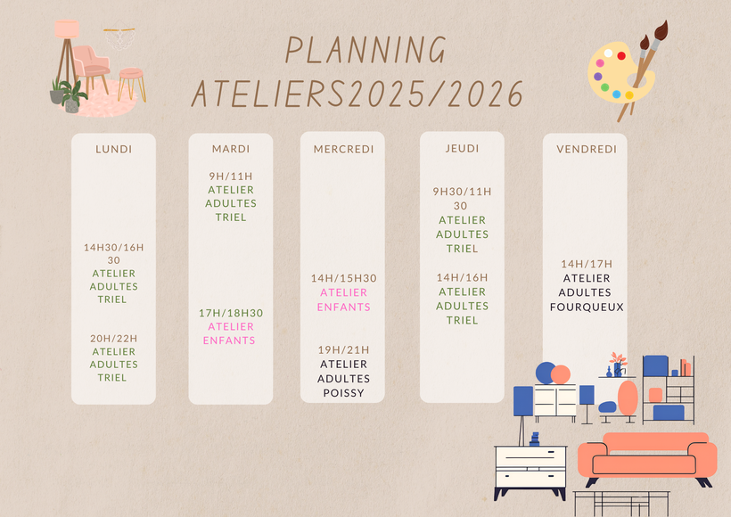 Moment de détente créative d'une durée de deux heures ou pour des stages d'une journée, vous pourrez tout y imaginer et réaliser une déco personnalisée dans le respect de votre